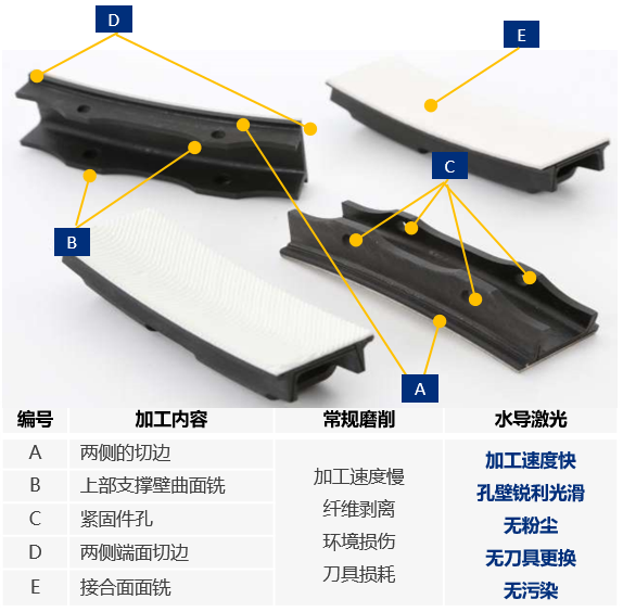 RJ505水導(dǎo)激光加工機(jī)床憑借其強(qiáng)大的激光能量和水冷卻特性,能夠有效避免過熱和氣孔等缺陷,提供更高的切割精度和加工質(zhì)量,從而顯著提升汽車制造業(yè)中復(fù)合材料零部件的生產(chǎn)效率和質(zhì)量。