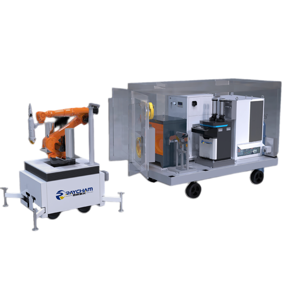 重點面向復(fù)雜現(xiàn)場條件、港口條件、艦載條件等多工況條件下的激光修復(fù)需求開發(fā),整體結(jié)構(gòu)采用模塊化設(shè)計,吊裝、運輸方便,小巧便捷、整體設(shè)計美觀。機(jī)器人工作車體采用電動遙控控制,靈活性更強。